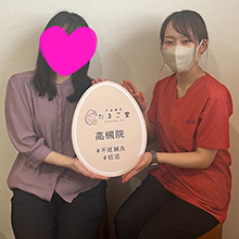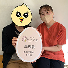 たまご堂に通うまでは、私もこの先赤ちゃんを授かれるのだろうかという漠然とした不安と、何を頑張ったらいいのか分からないはがゆさを感じながら過ごしていました。しかし、通い始めてからは不妊治療に対して前向きに向き合えるようになったと感じます。それは、何か分からないことがあればいつでも相談に乗ってくださり、不安なことがあれば一緒になって考えてくださるたまご堂のみなさんのおかげです。私にとって本当に心強い存在でした。